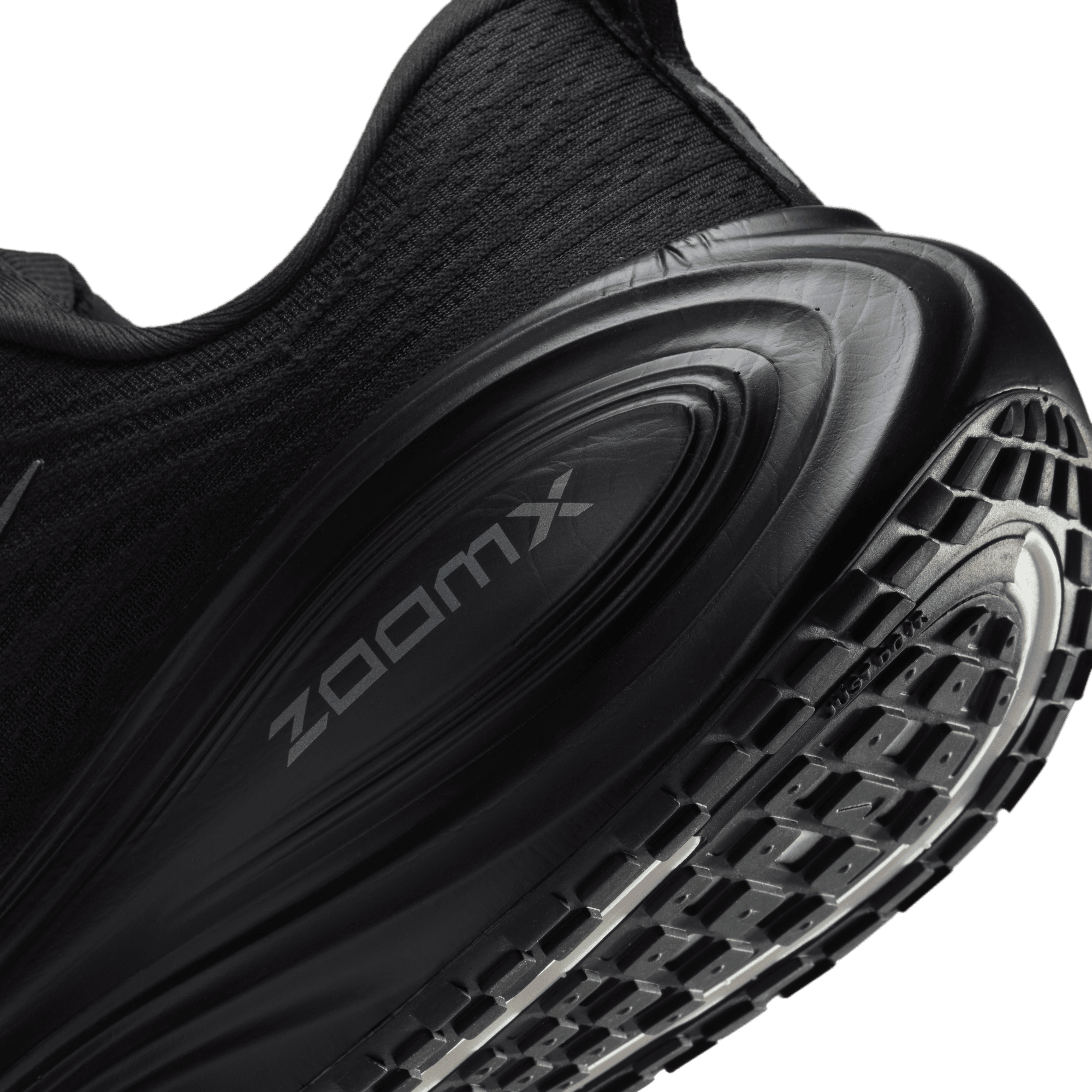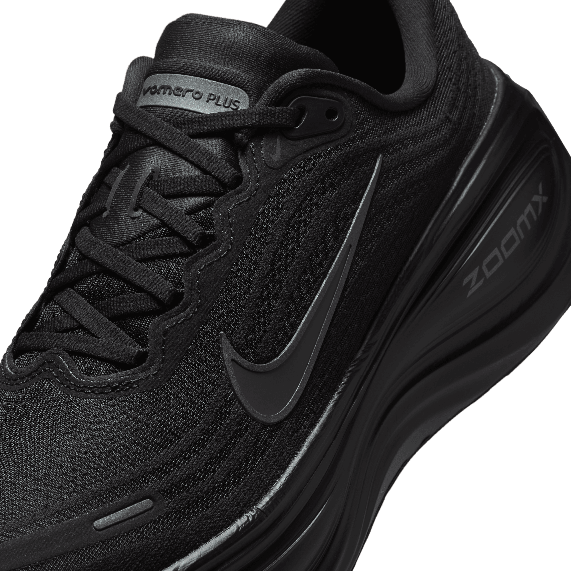 Take maximum cushioning to the next level with the next evolution of Nike's premier running line on the Vomero Plus. It provides an ultra-comfortable ride for everyday runs thanks to a mountainous stack of black full-length ZoomX foam, the most responsive foam in the industry. Plus, the black engineered mesh upper is made from soft, breathable yarn for a comfortable fit. Tonal laces, lining and pulltabs; tonal branding on the toe, sides, insole, tongue and pull tabs; and a high abrasion rubber black and grey outsole completes the design.