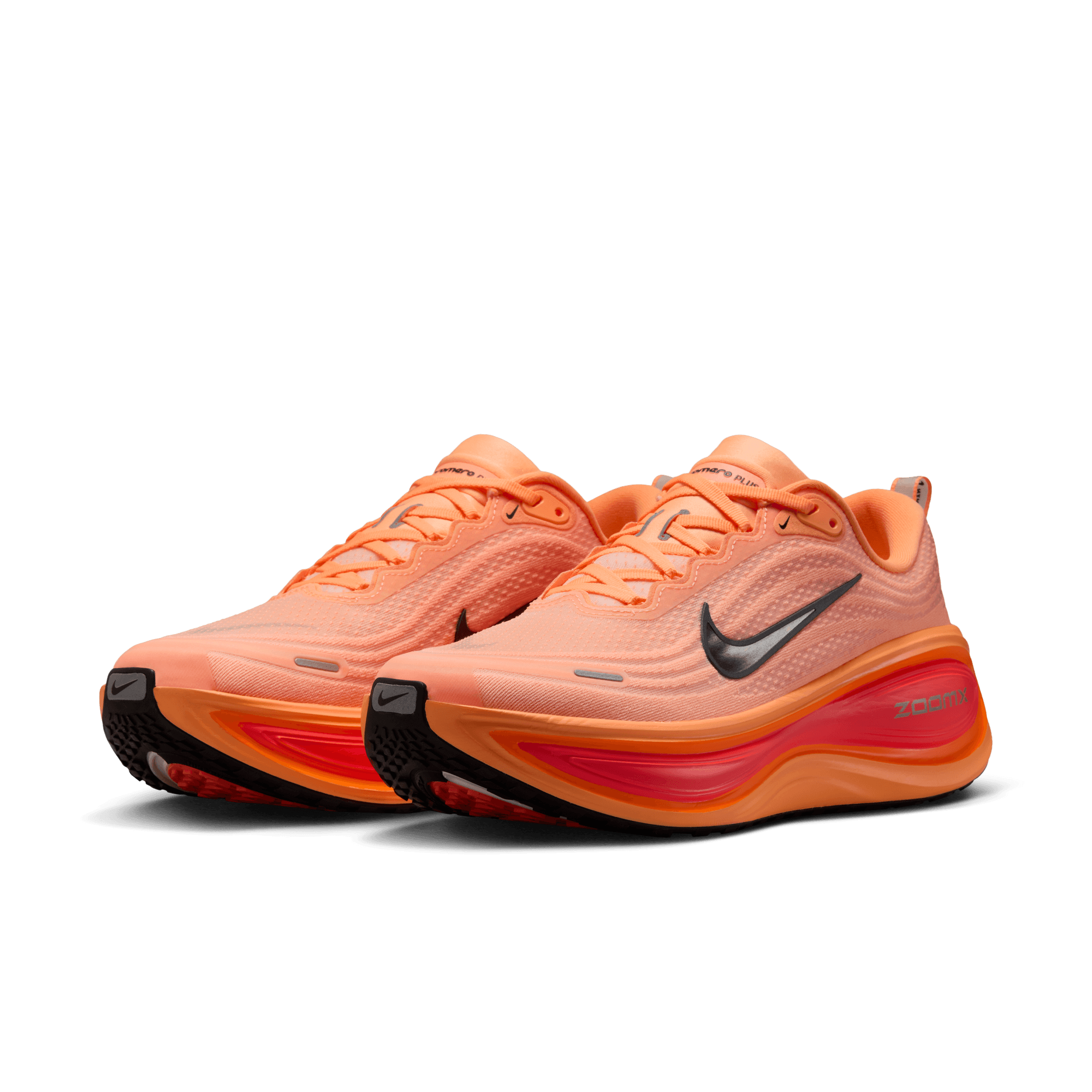 Take maximum cushioning to the next level with the next evolution of Nike's premier running line on the Vomero Plus. It provides an ultra-comfortable ride for everyday runs thanks to a mountainous stack of bright orange full-length ZoomX foam, the most responsive foam in the industry. Plus, the light orange engineered mesh upper is made from soft, breathable yarn for a comfortable fit. Tonal laces, lining and pulltabs; black branding on the toe, sides, insole, tongue and pull tabs; and a high abrasion rubber black and orange outsole completes the design.