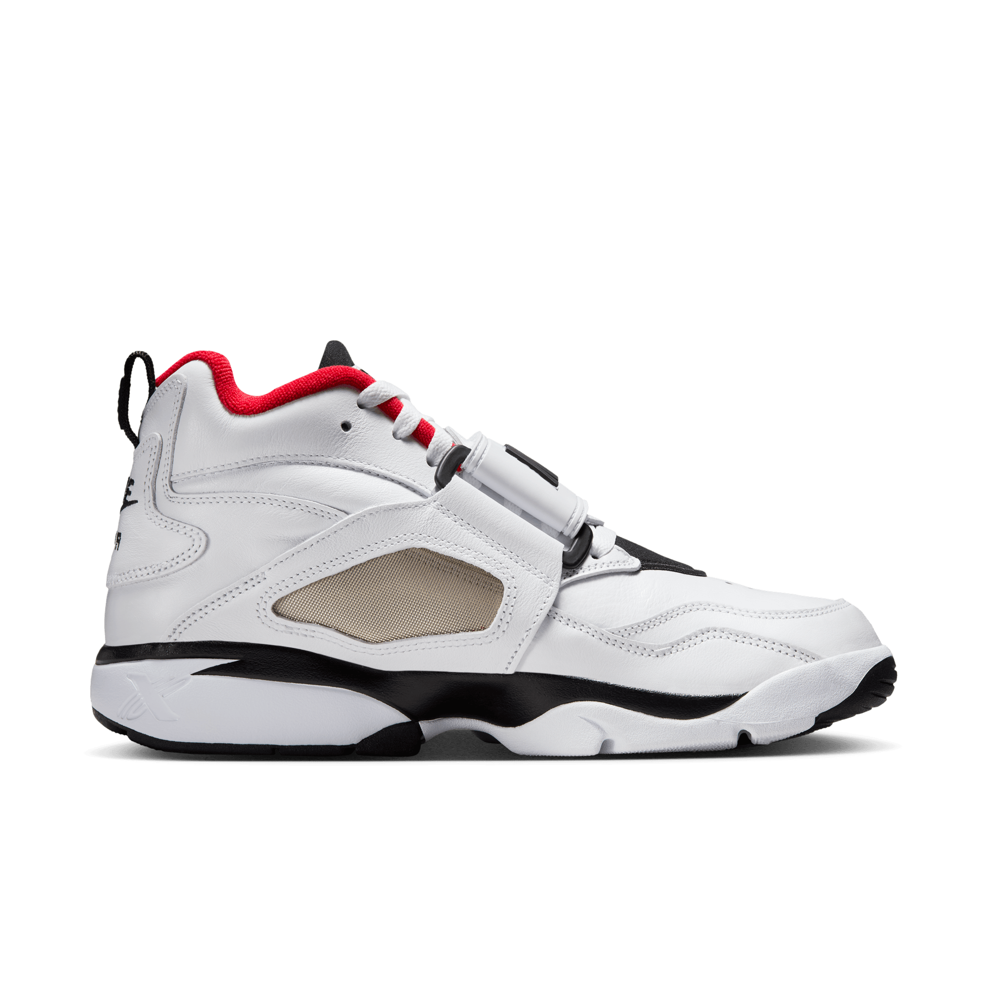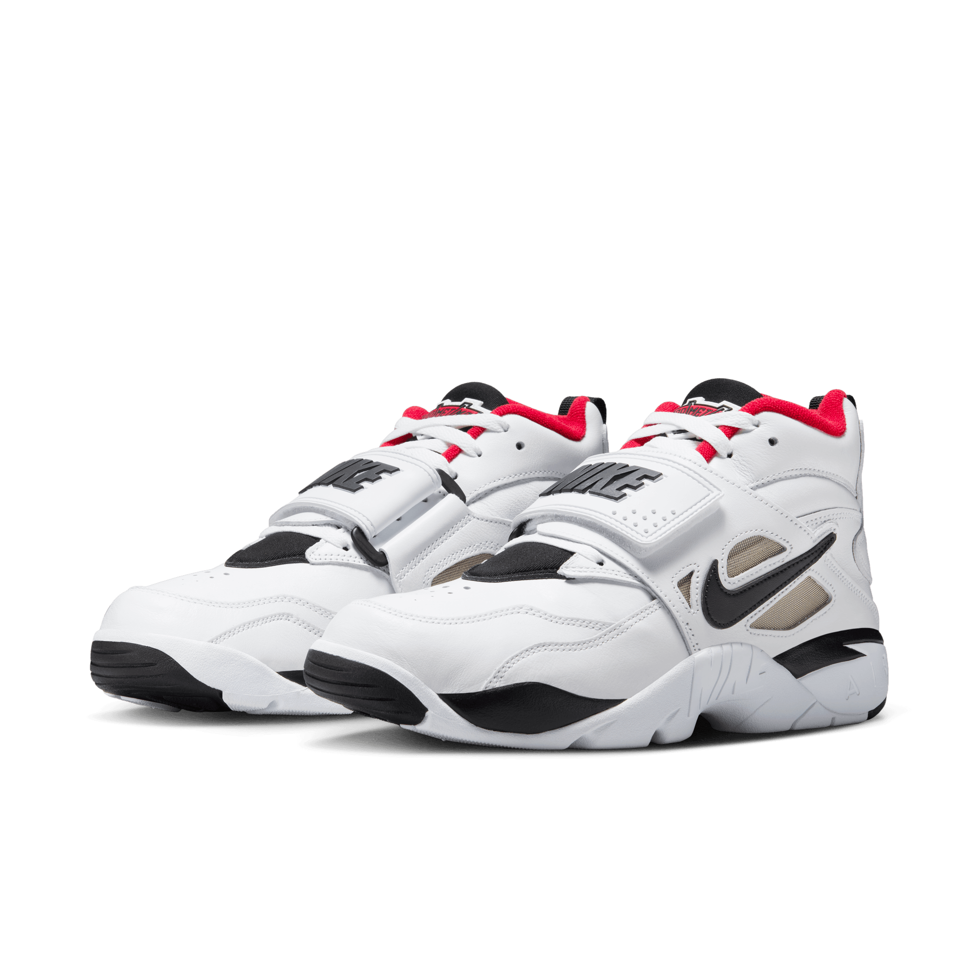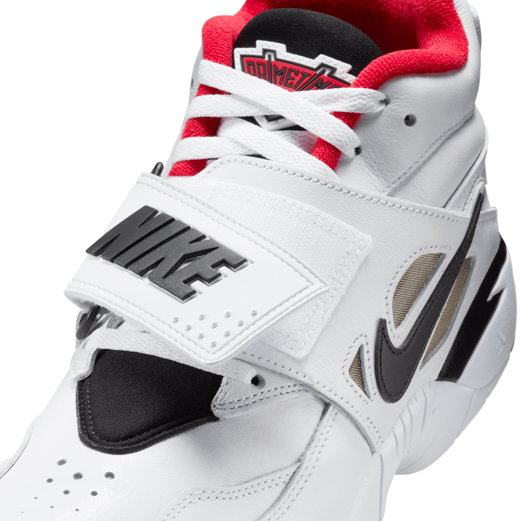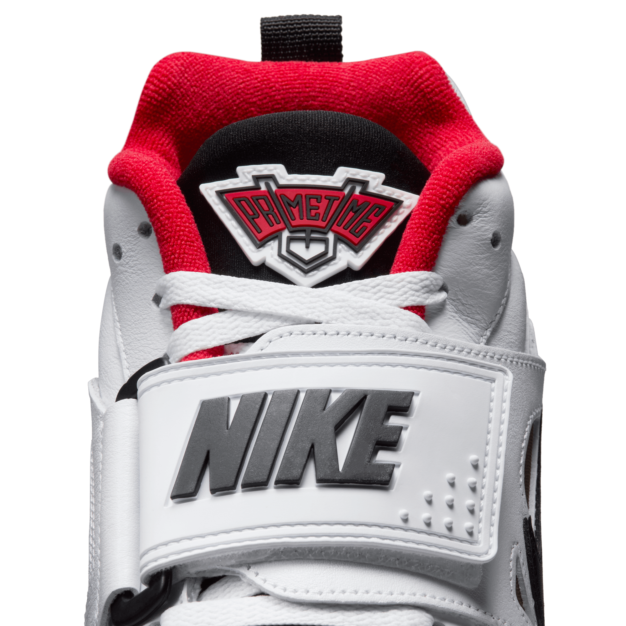 Nike takes it back to the drawing board with the first draft of Deion Sanders' original signature model on the Air DT Proto '92 "White/Black". Created as a prototype for 1993's Air Diamond Turf, then consigned to the archives upon that shoe's release, it's back in the form of the Air DT Proto '92. Closely resembling the shoe it would eventually become, the prototype is a classic mid-top cross trainer built from white leather with a white leather midfoot strap that features NIKE branding instead of a swoosh. The swoosh shifts to the side, covering the metallic gold mesh panels, with black accents and a red lining nodding to Sanders' Atlanta Falcons colors. An encapsulated Air Sole with black and white rubber outsoles, and Deion's iconic "Primetime" logo on the tongue supply the finishing touches.