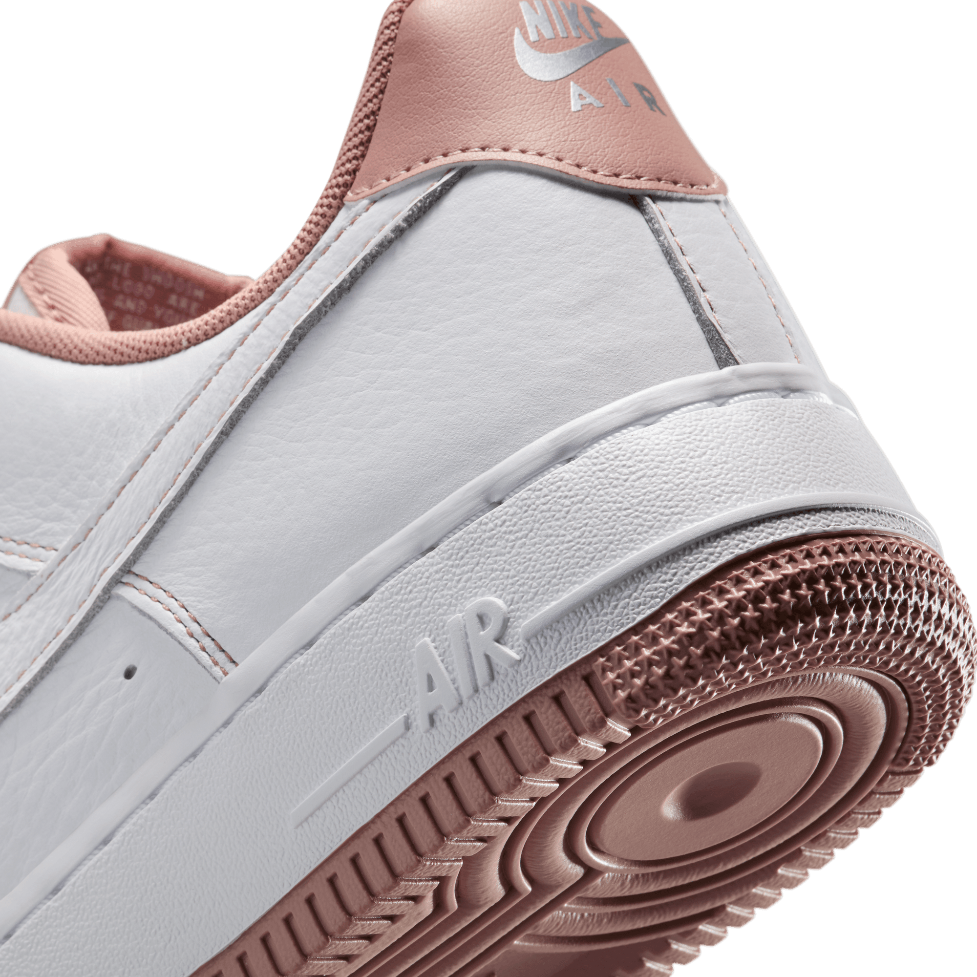 Nike's most iconic silhouette gets a high-level upgrade on this women's exclusive WMNS Air Force 1 '07 "Mini Jewel". This clean makeup of the iconic silhouette features premium white pebbled leather upper with dusky pink accents on the laces, lining and contrast stitching. Particle Pink also graces the leather heel tab and woven tongue tag, matching the rubber outsole. A chrome mini jewel swoosh on the lateral front quarter serves as the defining feature, while chrome lace dubraes and Nike Air branding on the heel and tongue tag completes the design.