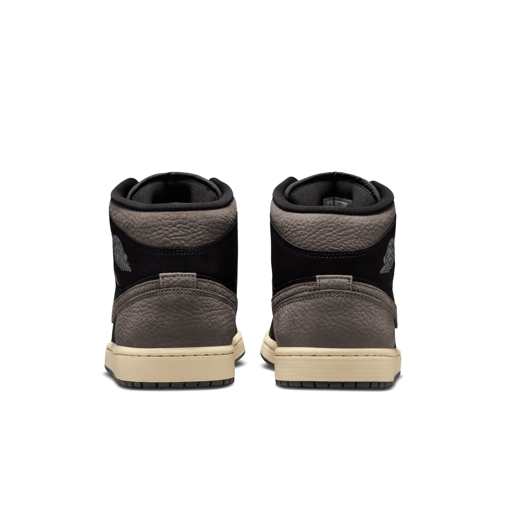 This SE version of the classic silhouette mixes earthiness with understated luxury on the Air Jordan 1 Mid SE "Black/Olive Grey". The classic style adds pairs supple olive grey pebbled leather on the toe box, collar and swoosh with rich black nubuck on the sides, vamp and ankle. It's accented with a bright orange Jumpman on the black tongue tag, with black laces and lining, and a white Wings logo on the ankle. A cream midsole and grey rubber outsole finish off the look of this AJ1 Mid.