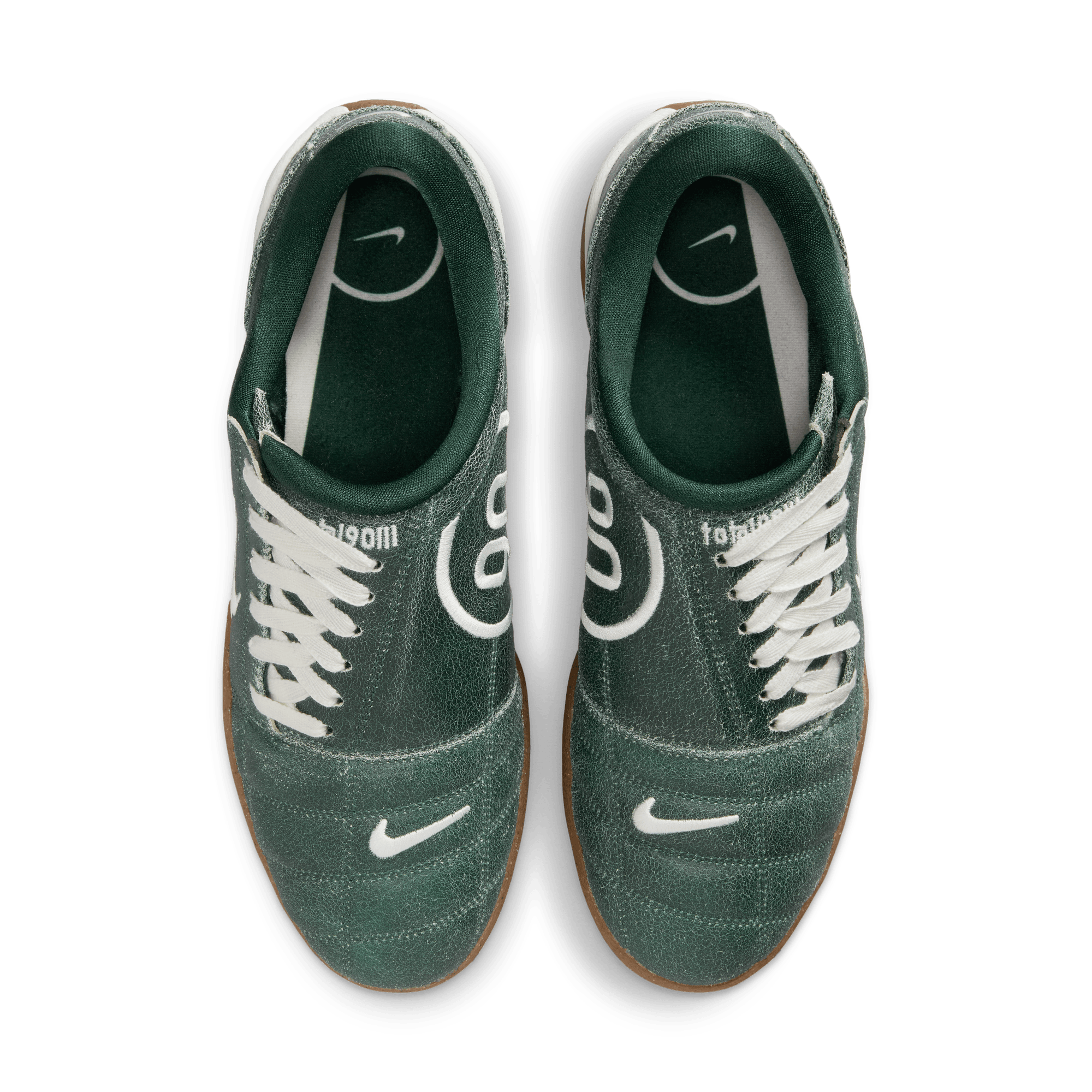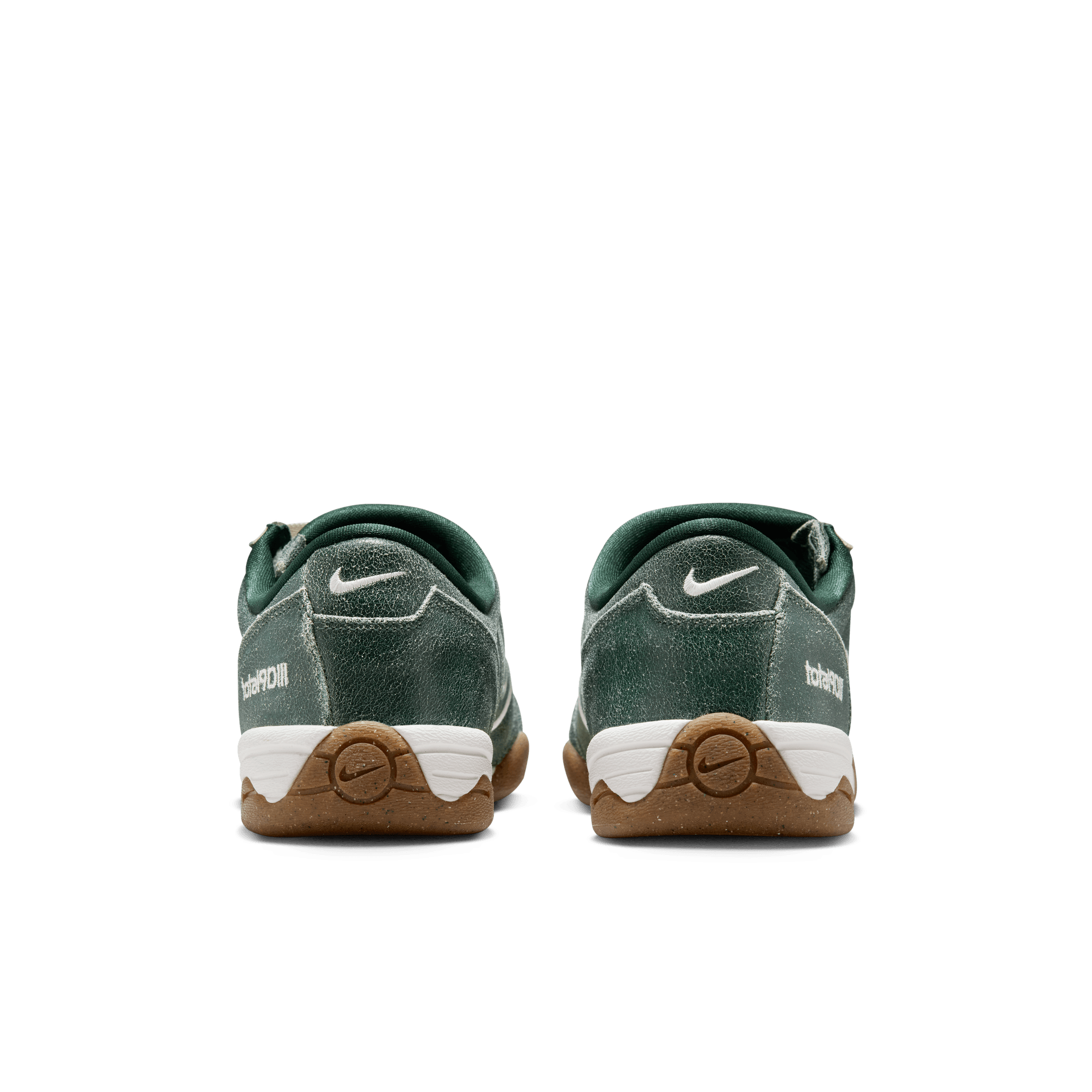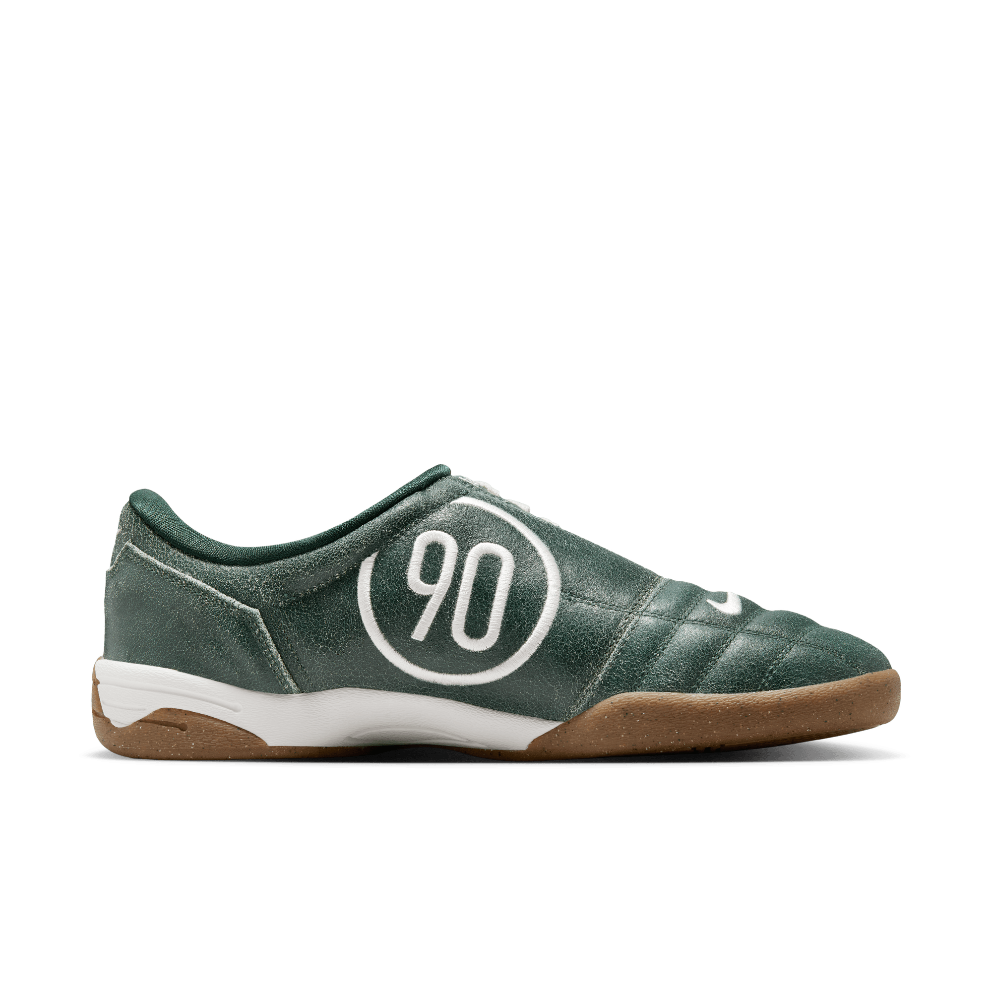Nike remakes a Y2K soccer superstar into a lifestyle option with the Total 90 SP "Pearl White/Shadow Brown". Born on the pitch in 2000, the Total 90 left a lasting legacy on the beautiful game. Now it's back and ready for the street with authentic soccer style, reloaded for today. This modern edition swaps out the cleats for a flat, gum rubber sole but keeps the iconic quilted upper and asymmetrical lacing of the original. An aged and cracked dark green finish on the leather upper highlights white below the surface, while while embroidered branding, stitch detail and laces finishes off the look.
