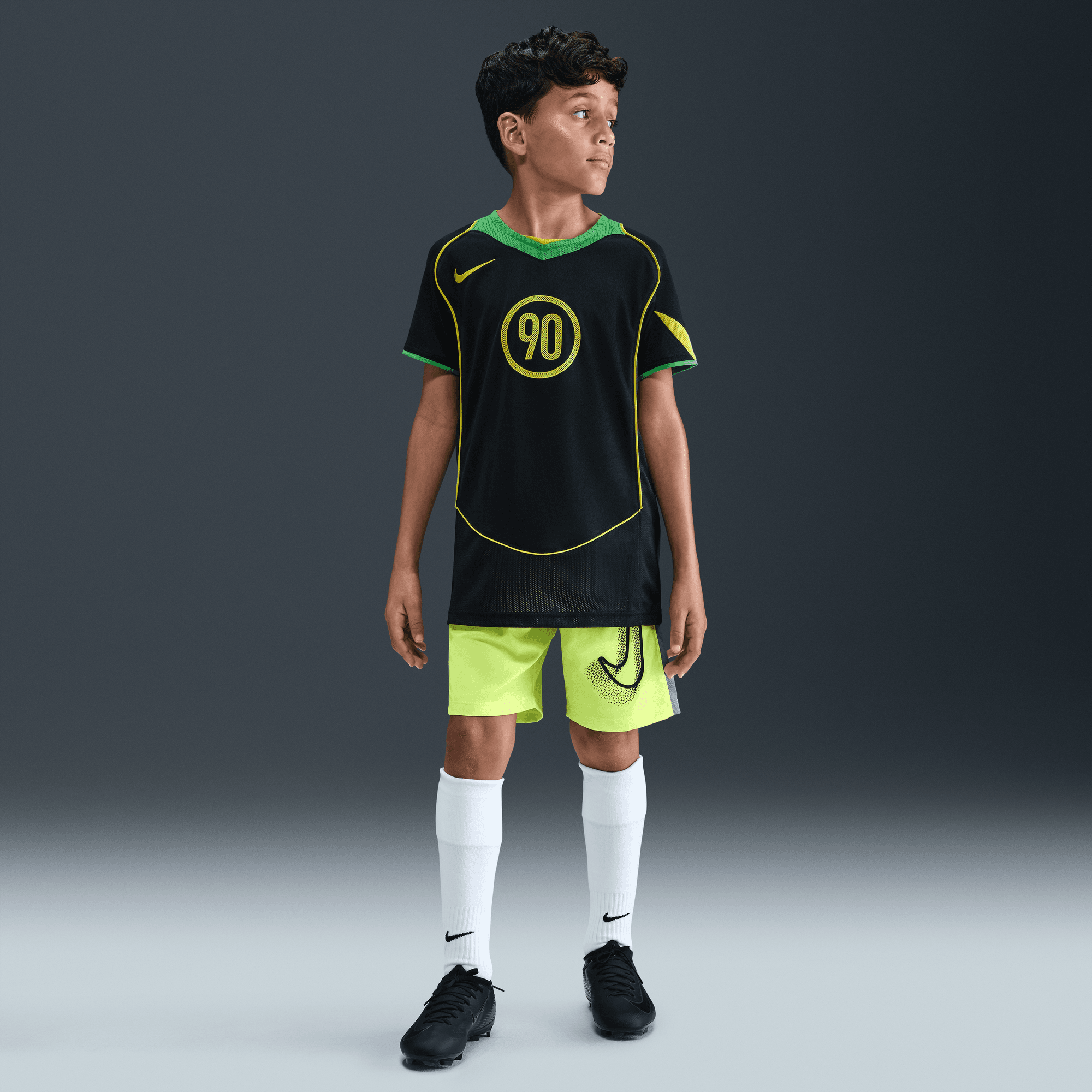 Channeling the energy of the early-2000s, this Total 90 jersey is a throwback to the kits worn by some of the era's biggest clubs and national teams. Designed to perform through all 90 minutes of a match, the collection became one of the iconic kits of the 2000s thanks to its curving lines, asymmetric designs and mixed materials. This rerelease brings that same energy for a new generation of players and fans with updates like sweat-wicking Dri-FIT technology to the ultra-breathable, 100% polyester construction; combining soft knit fabric with mesh paneling on the side, sleeves and back panels.