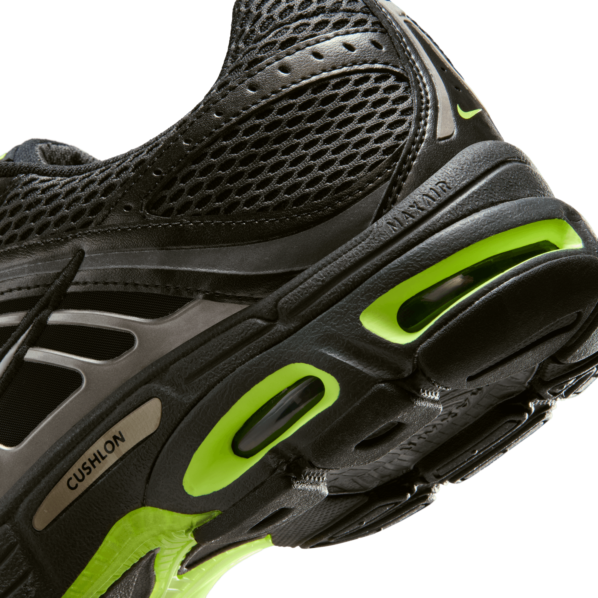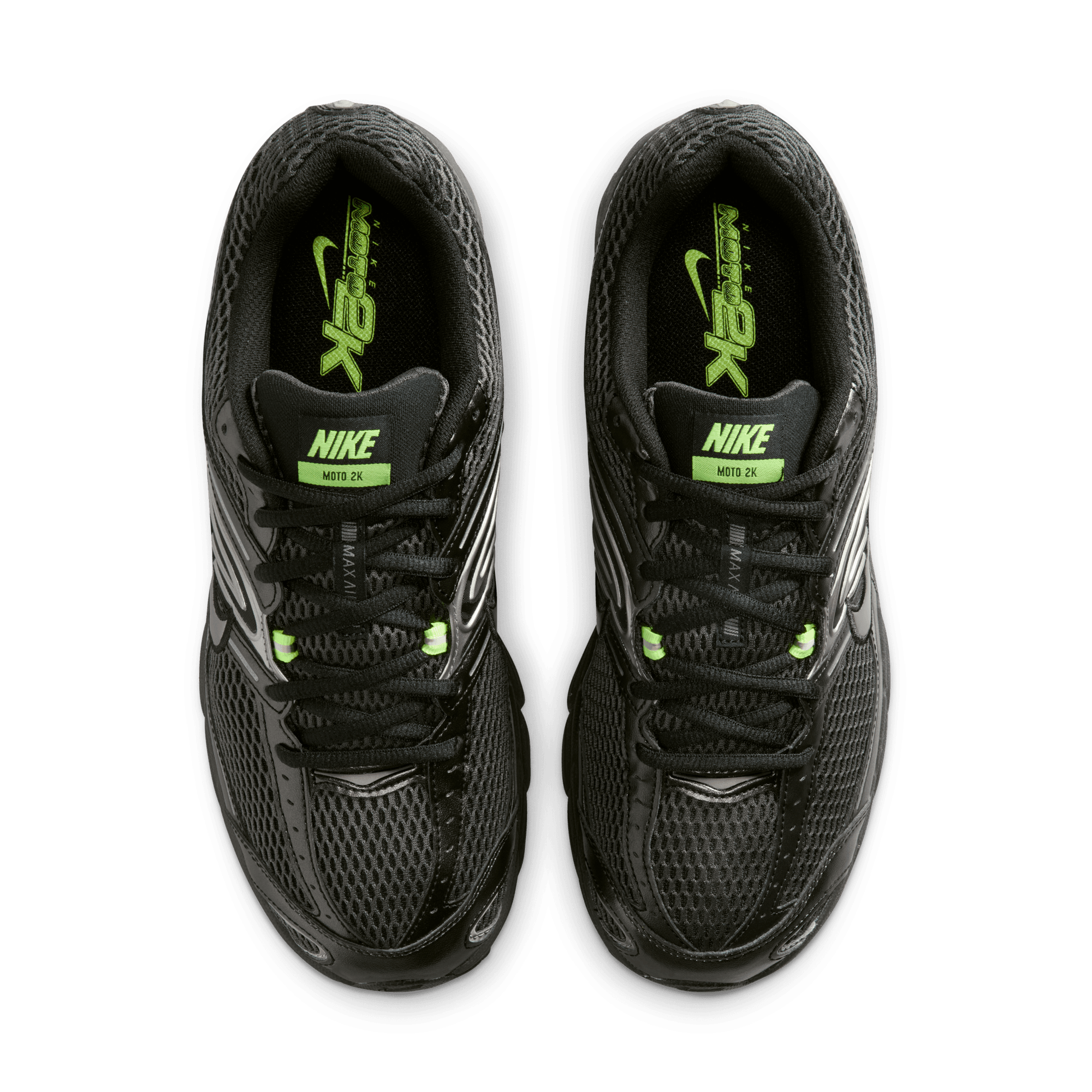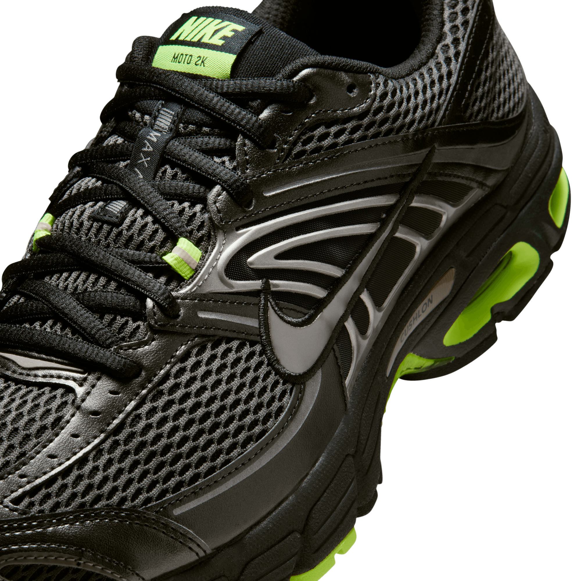 Nike's next tech runner for the masses is here with early-aughts style to spare on the Air Max Moto 2K. The familiar yet fresh design features a grey, open weave mesh upper layered in synthetic metallic silver panels, 3M reflective details, and a silver swoosh on top of a black and silver TPU side grill. A black Phylon midsole contains plush and comfortable Air Max cushioning, while a volt tongue tag and black and volt rubber outsole completes the look.
