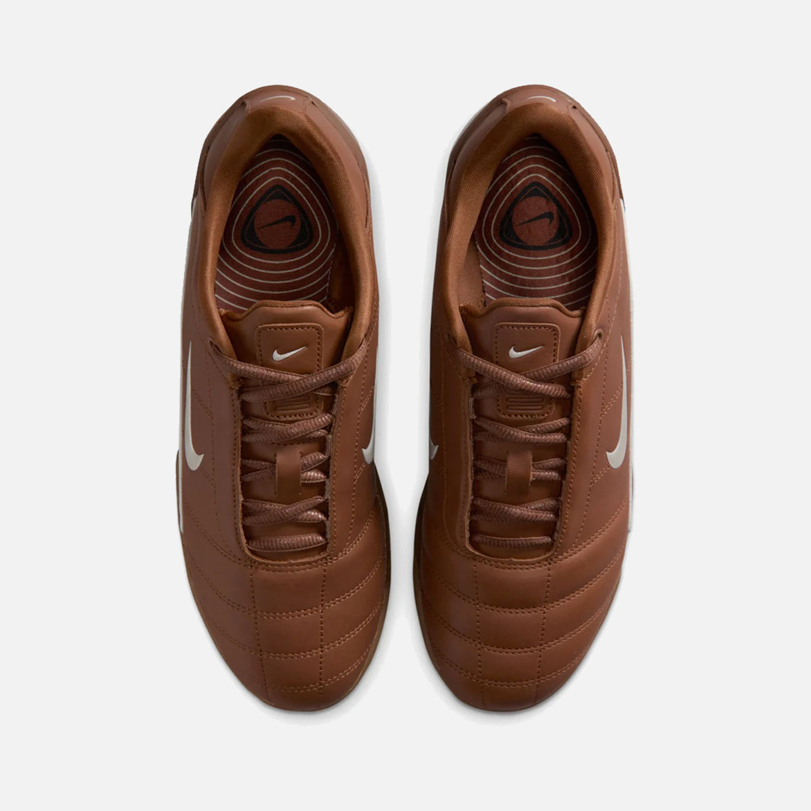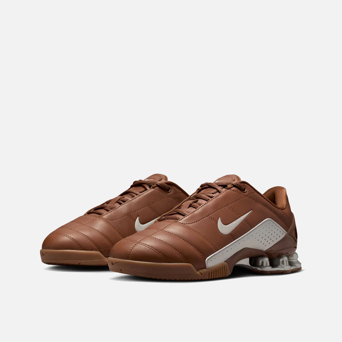 Nike's latest hybrid conjures early-2000s vibes by adding the soccer style to iconic cushioning on the WMNS Total 90 Shox Magia QS "Sail/Pale Ivory". The familiar quilted leather upper of the Total 90 is grafted onto a low profile version of the heel Shox, much shorter than the TL or R4 that we know so well. Perforated metallic silver panels on the medial side and TPU overlays on the toe and heel fill in the details, with silver Shox and white rubber outsole completing the build.