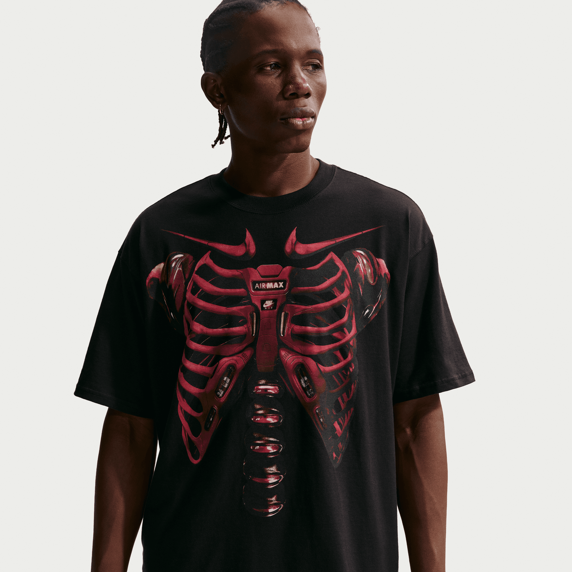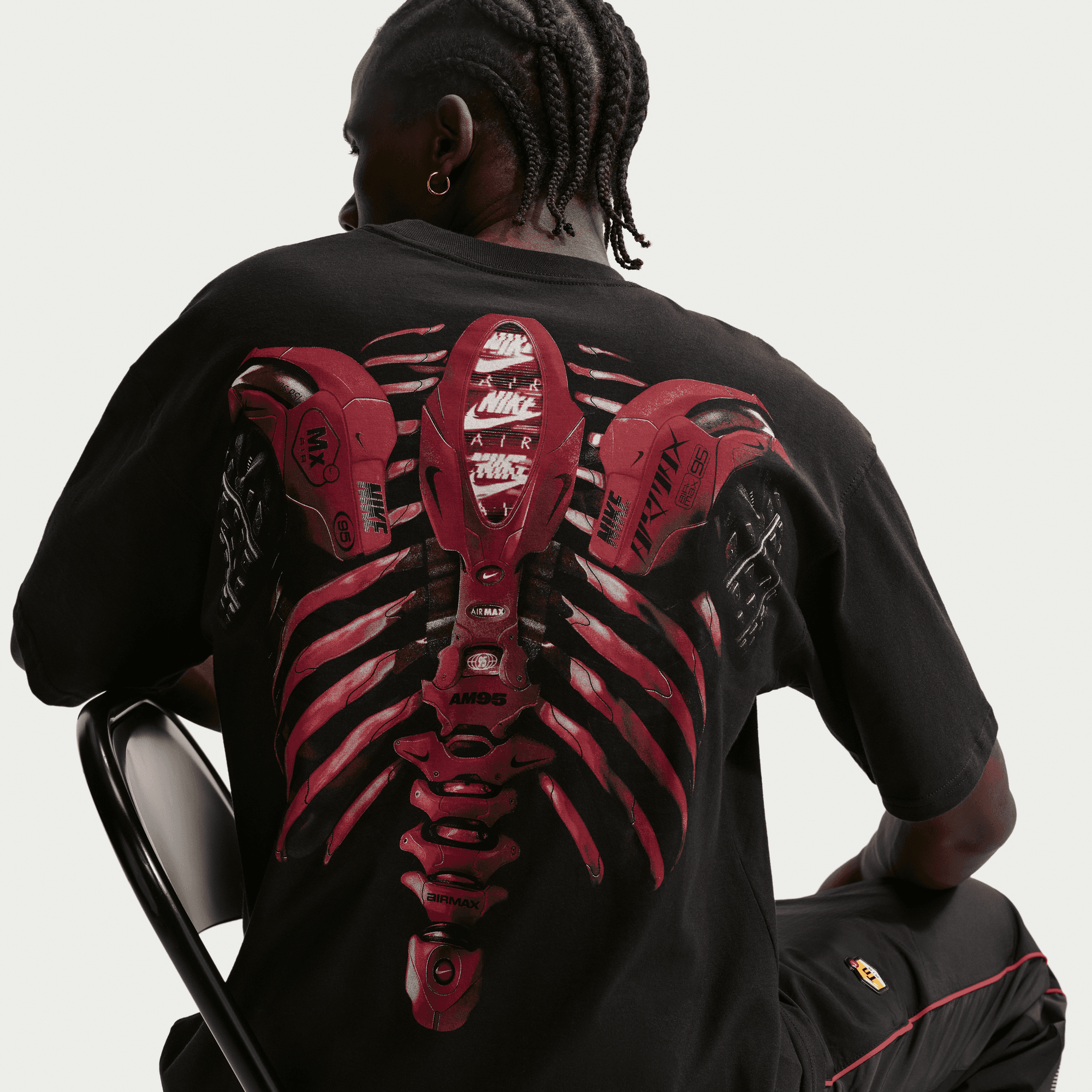 Turn your world inside-out with the Nike Max90 X-Ray Tee. This loose-fitting, 100% cotton tee boasts a front and back graphic of a rib cage and spine comprised of Air Max 95 elements in place of the bones. Prove your love of the Max is more than just skin deep.