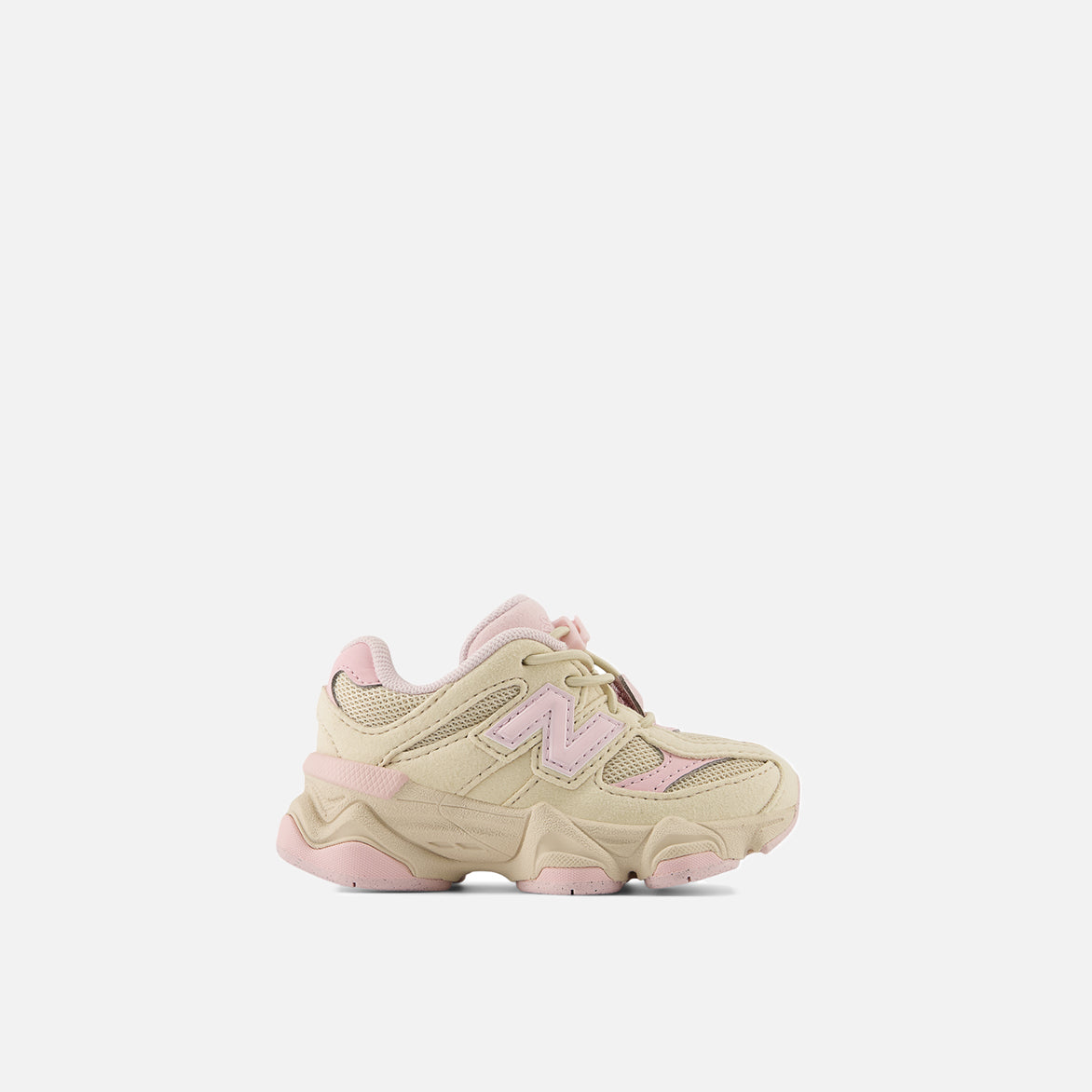New Balance injects the DNA of their signature 99X series into a brand new model, the 9060, that marries an early aughts aesthetic with modern technology. This 9060 "Dream State/Bisque" constructs its upper from beige mesh and suede with pink leather layered on top in a retro-futuristic Y2K aesthetic. Branding appears courtesy of 991-inspired tongue tag, pink leather N on the lateral side, embroidered 'N' logo on the medial side, and NB on the heel. A pink translucent CR heel counter sits just above the sculpted dual-density midsole featuring ABZORB and SBS cushioning. Finally the split pod outsole features a diamond pattern inspired by the 860 to finish off the heritage influence.