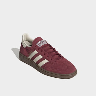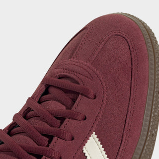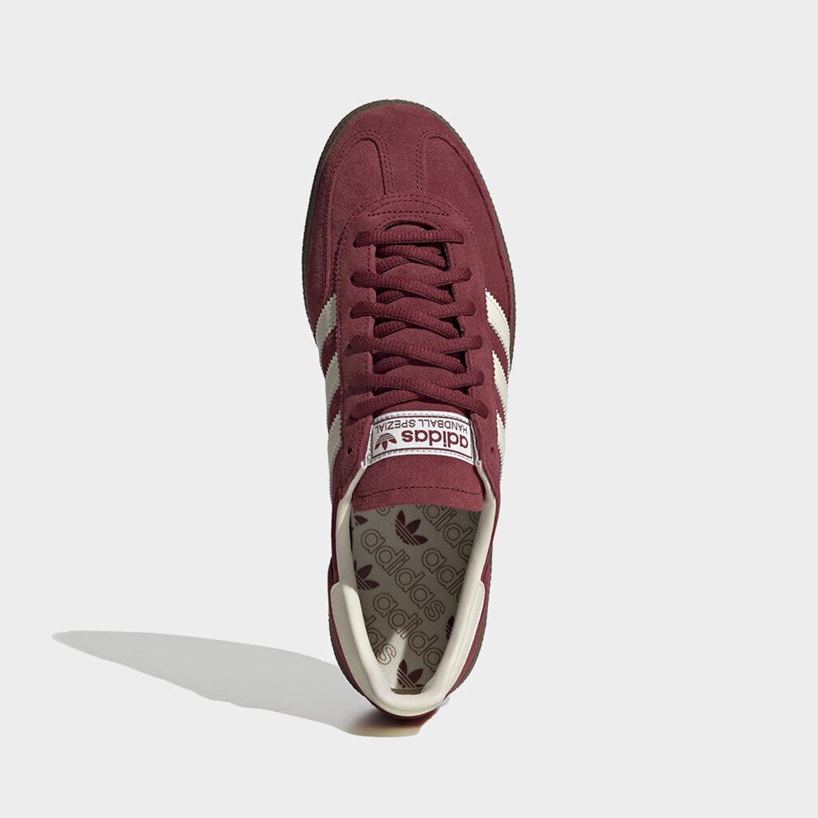 Originally released in the '70s, the Handball Spezial is a retro classic that has been revived for today. This new version is built from a maroon suede upper with tonal suede overlays, cream leather 3-Stripes and heel tab for a vintage look with modern comfort. A dark gum rubber outsole offers grip and durability, while a maroon branding on the white tongue tag, gold SPEZIAL on the side, and maroon laces and cream leather lining finish off the details.