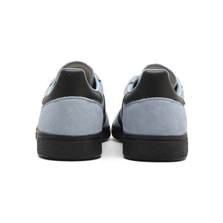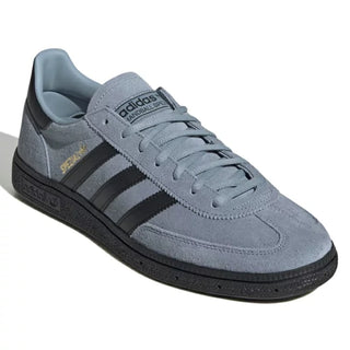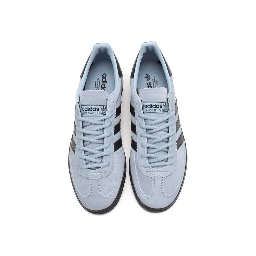 Originally released in the '70s, the Handball Spezial is a retro classic that has been revived for today. This new version is built from a blue suede upper with tonal suede overlays, black leather 3-Stripes and heel tab for a vintage look with modern comfort. A black rubber outsole offers grip and durability, while black branding on the blue tongue tag, gold SPEZIAL on the side, and blue laces and leather lining finish off the details.