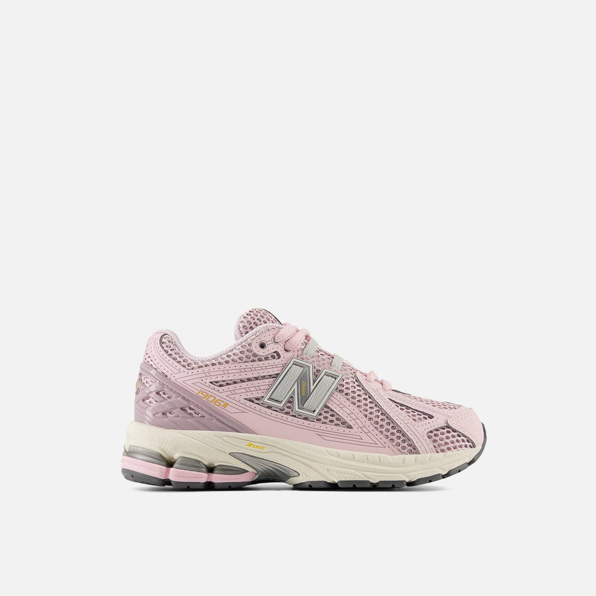 Following in the footsteps of the 2002R, another retro 2000s runner is back with fresh style on the 1906R. The shoe features pink synthetic leather layered over rose-colored mesh on the upper, with a unique grey 'N' logo that ties into the lacing system overlaid on the sides and white accents. New Balance branding hits the tongue, toe and heel, while "1906R" on the rear quarter, and "N-ergy" on the midsole fill in the rest of the details. A pale purple thatched TPU heel cage, cream midsole with ACTEVA LITE cushioning in the forefoot and ABZORB SBS cushioning in the heel, Stability Web technology for arch support and a black N-ergy rubber outsole completes the look.