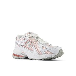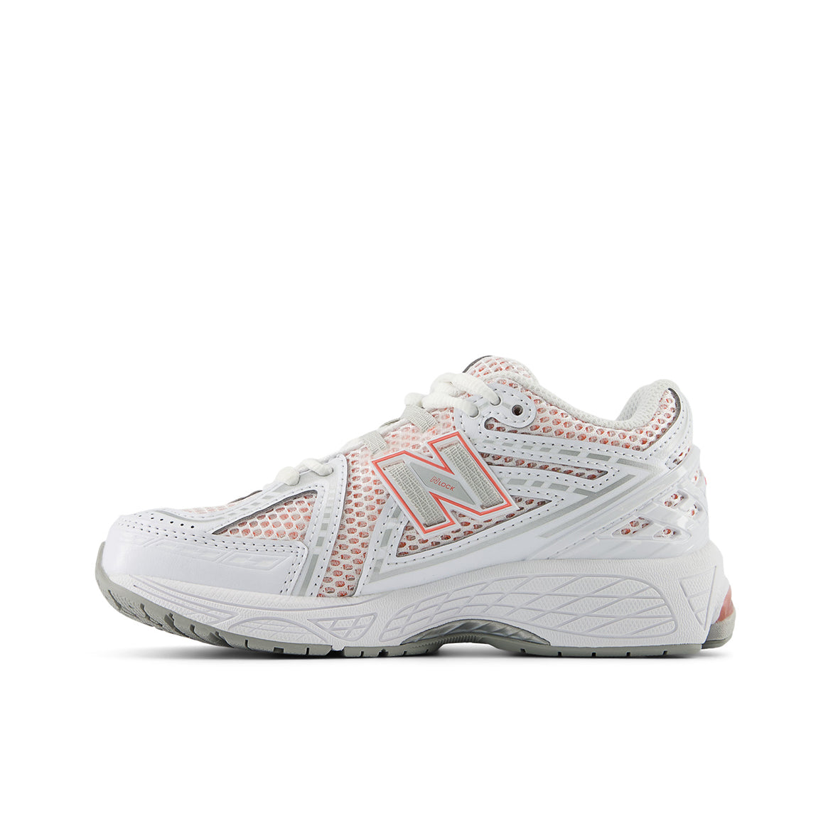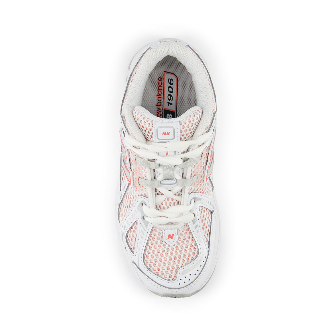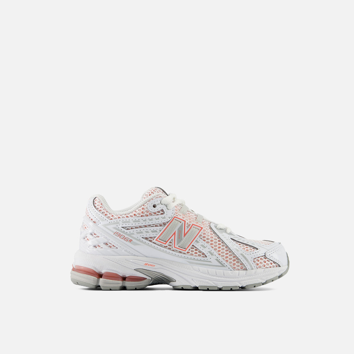 Following in the footsteps of the 2002R, another retro 2000s runner is back with fresh style on the 1906R. The shoe features white synthetic leather layered over faded red mesh on the upper, with a unique grey 'N' logo that ties into the lacing system overlaid on the sides and white accents. New Balance branding hits the tongue, toe and heel, while "1906R" on the rear quarter, and "N-ergy" on the midsole fill in the rest of the details. A white thatched TPU heel cage, white midsole with ACTEVA LITE cushioning in the forefoot and ABZORB SBS cushioning in the heel, Stability Web technology for arch support and a grey N-ergy rubber outsole completes the look.