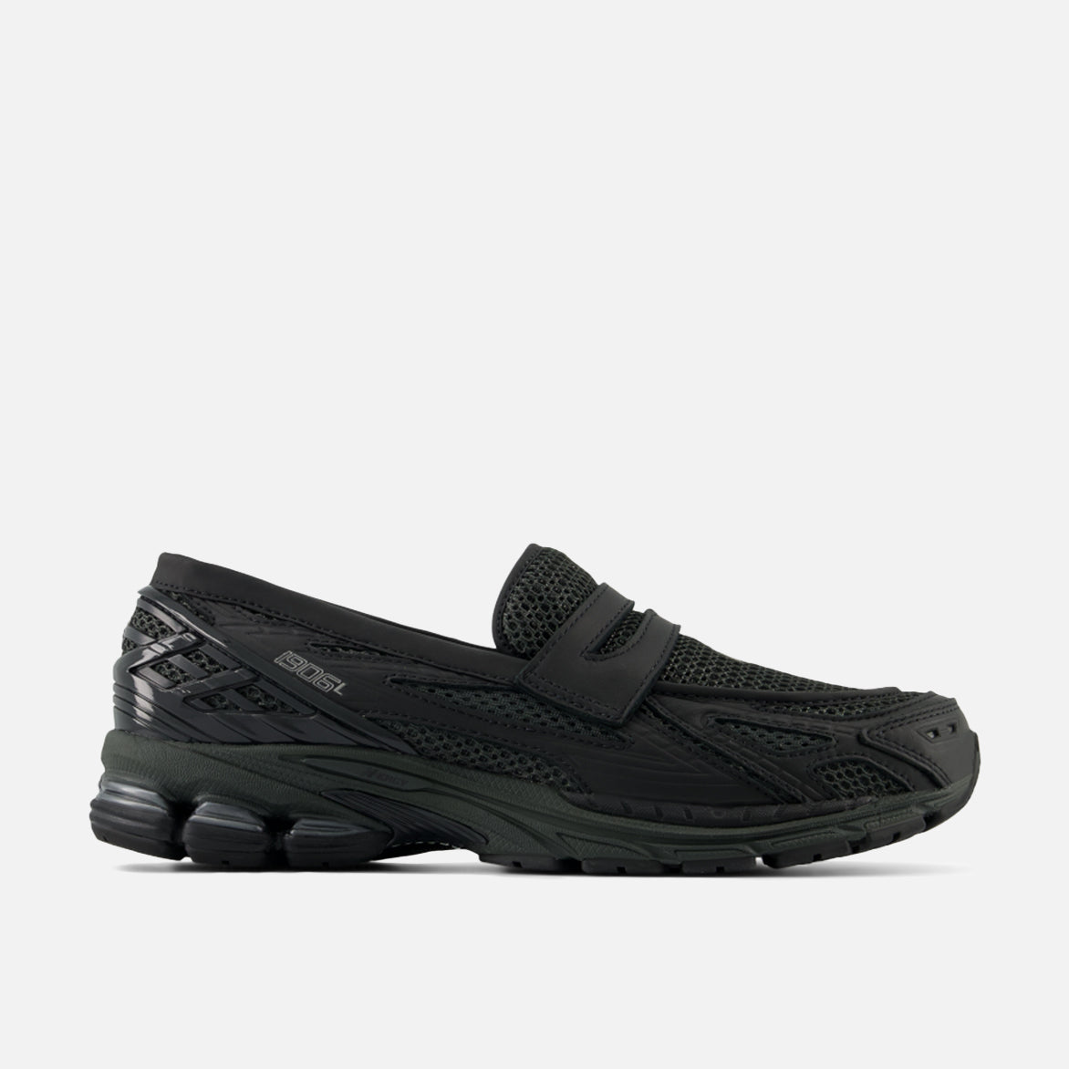 New Balance has finally made the hybrid shoe of the future- part loafer, part sneaker, all good- with the 1906L "Blacktop". The stylishness of a loafer combined with the tech of a modern runner, the 1906L is built from a dark grey open-weave mesh upper with tonal leather overlays throughout. A a grey thatched TPU heel counter and 1906L branding tie back into its sneaker origins, while a tonal ABZORB midsole and black and grey rubber outsole complete the design.
