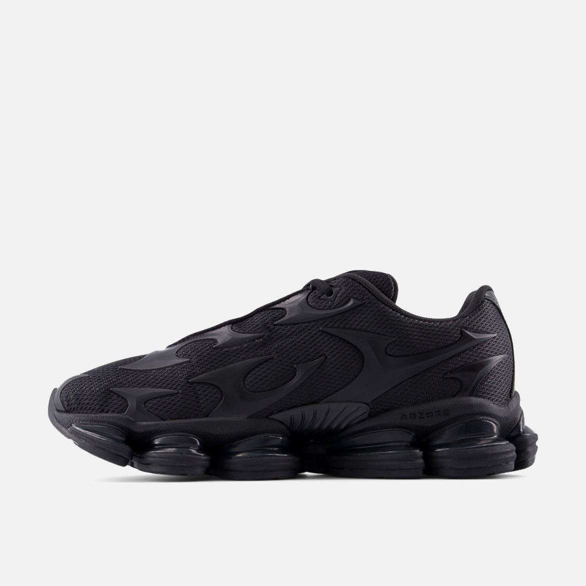 Continuing in the vein of New Balance's line of Y2K-inspired lifestyle runners, the ABZORB 2000 is another triumph of heritage design. It takes a distinctive feature of those 2000s running-inspired classics and makes it the focal point of this all-new style. The progressive, experimental design features an eye-popping full-length combination of ABZORB cushioning and black ABZORB SBS pods covered in a black rubber outsole. This thoroughly futuristic outlook is also reflected with a minimalist-influenced upper design, featuring black mesh covered by tonal no-sew synthetic overlays with New Balance branding at the tongue, heel and signature side N logo.
