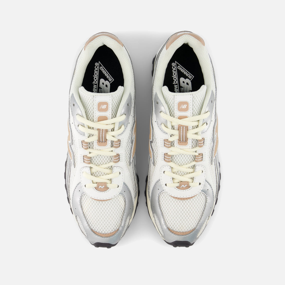 New Balance moves away from the chunky-soled "dad" look for their newest lifestyle silhouette: the 204L, an unexpected interpretation of 2000s running-inspired style. This low-profile silhouette blends the slim structure of '70s running shoes with layers of the tech-inspired texture of premium silver leather and embossed overlays over open knit white mesh. Pulling design elements from past and present New Balance favorites like the 321, 740, and 530, the 204L feels familiar, yet new. Its sleek proportions, accented with arced lines across the overlay, make the 204L both unique and easy to wear, while an EVA sole unit and 70s-inspired tread pattern finish off the design.