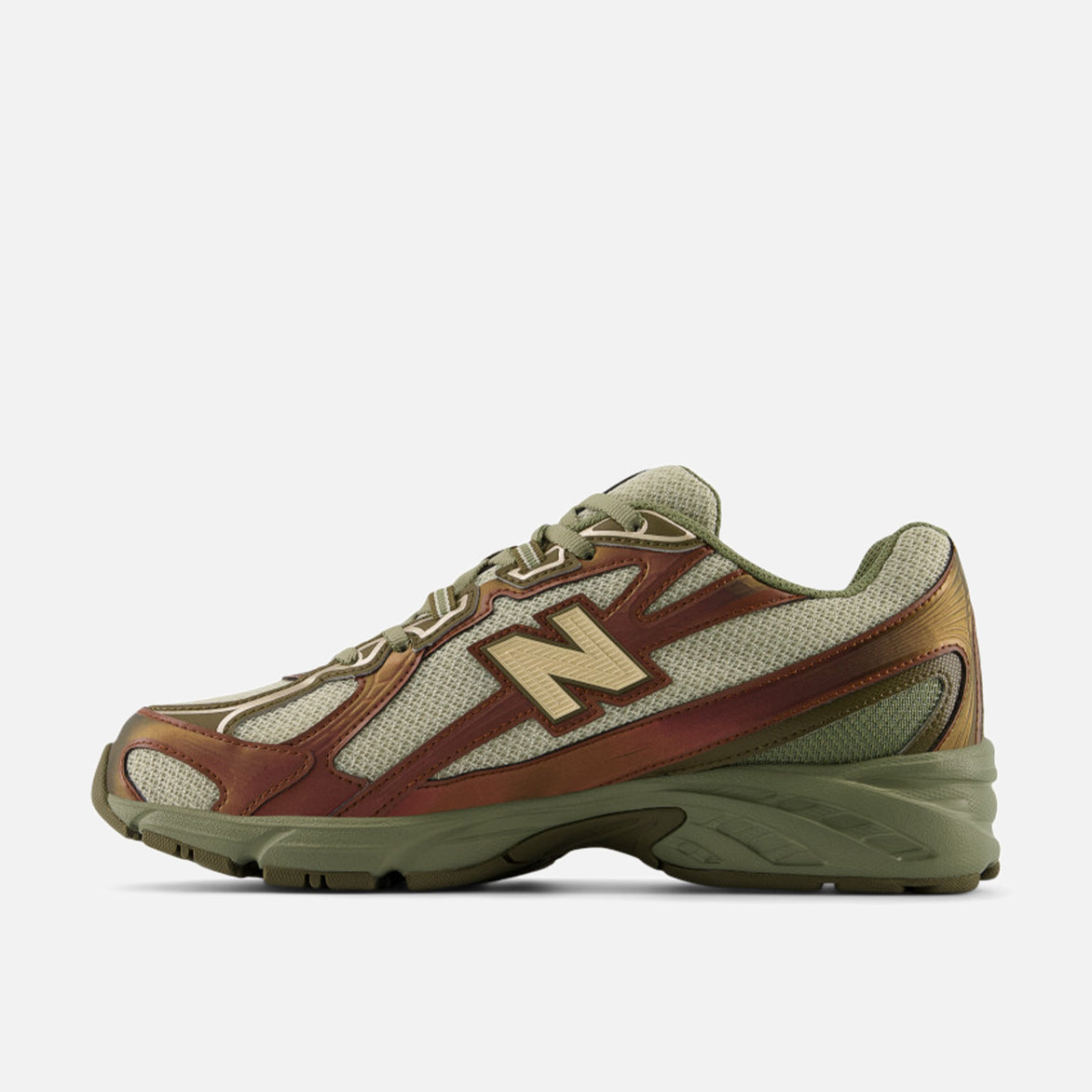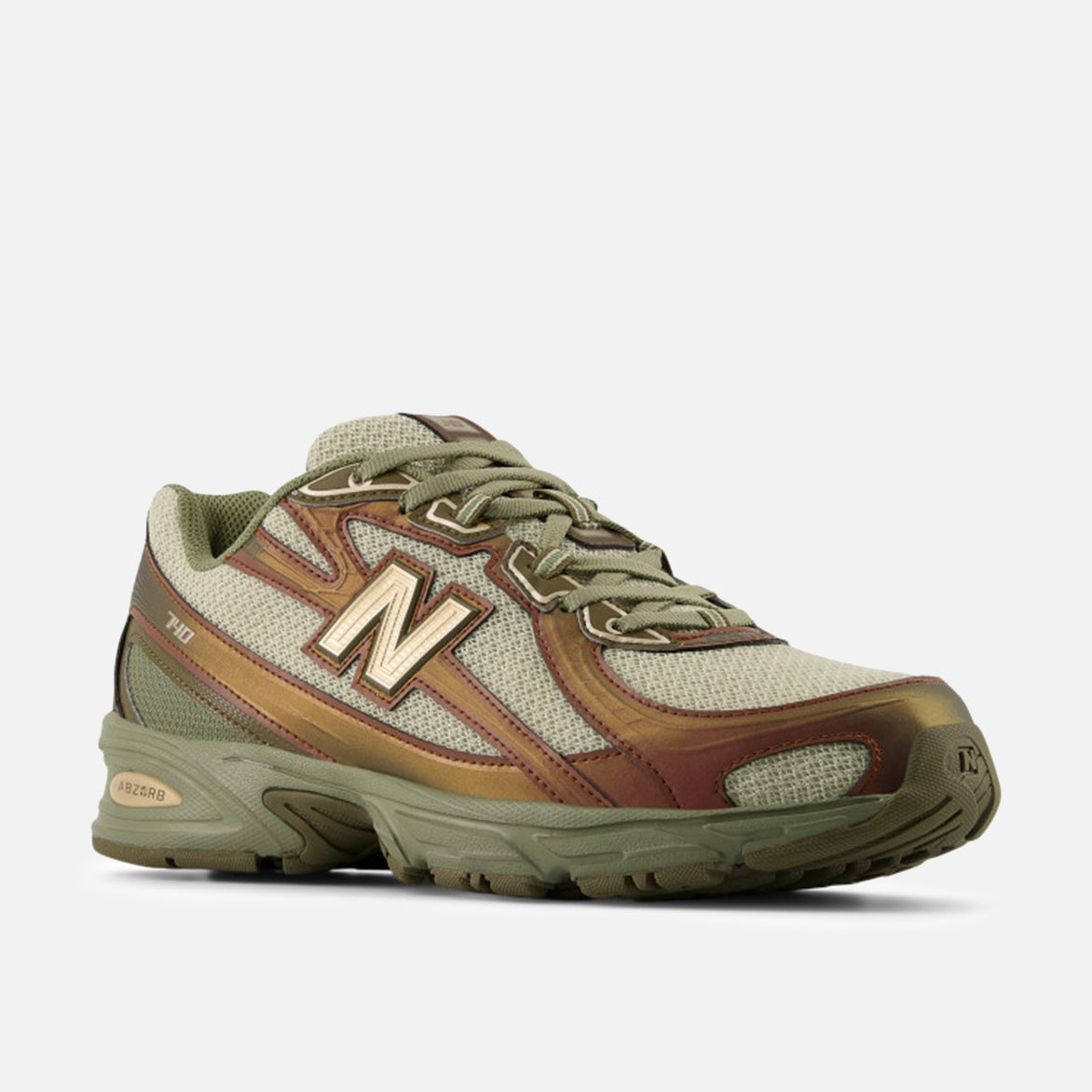 New Balance's longtime fan favorite early-aughts daily runner returns from the archives, poised to inspire a whole new generation of devotees with the updated 740 "Woodland". The 740 combines an open knit light green mesh upper, iridescent brown and olive angular synthetic overlays, molded TPU "N" logo, segmented ABZORB midsole and a dark olive rubber outsole. NB branding on the tongue and heel, olive laces and lining finish off the look.