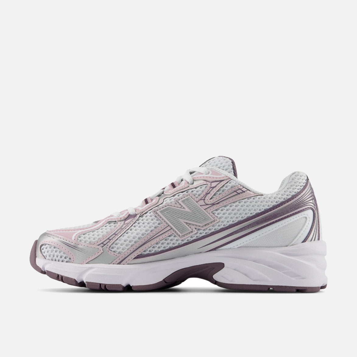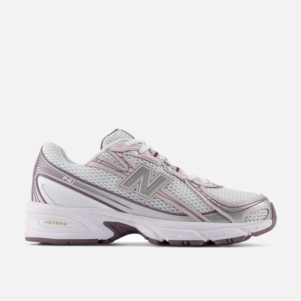 New Balance's longtime fan favorite early-aughts daily runner returns from the archives, poised to inspire a whole new generation of devotees with the updated 740 "Ice Wine/White/Rose Sugar". The 740 combines an open knit white mesh upper, pink and silver angular synthetic overlays, molded TPU "N" logo, segmented ABZORB midsole and a burgundy rubber outsole. NB branding on the tongue and heel, pink laces and lining finish off the look.