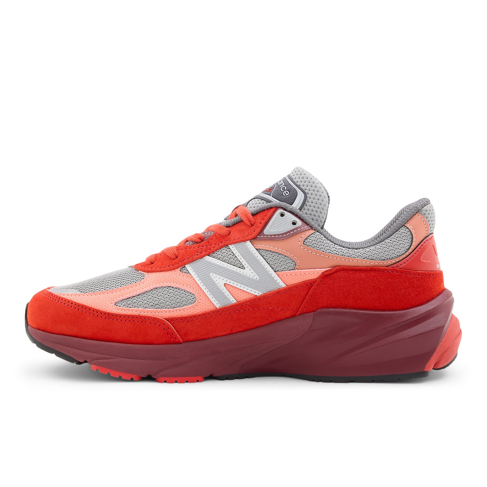 The New Balance 990V6 Made In USA "Community Red" continues the heritage of their 990 line of running shoes that have been the pinnacle of performance and design since 1982. The most recent update to the storied model streamlines the build by eliminating the traditional midfoot saddle and allowing deep red pigskin suede panels and pink synthetic leather overlays to flow from heel to toe over the silver mesh upper. The shoe features upgraded features like adding FuelCell foam to the burgundy ENCAP midsole for even more cushioning and propulsion. Red laces and grey lining, reflective elements on the side 'N' logo and throughout the upper, New Balance branding on the tongue, toe and rear quarter, Made in USA heel branding and a black and red rubber outsole finish off the design.