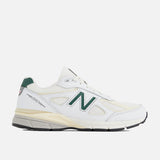 The New Balance 990V4 Made In USA "Forest Green" continues the heritage of their 990 line of running shoes that have been the pinnacle of performance and design since 1982. This premium update of 2016's V4 model is built from classic white leather on top of a tonal mesh upper with cream pigskin suede accents. It features a refined and sleeker shape with a green 'N' logo on the side, premium cushioning with an OrthoLite insole and a midsole that features ENCAP and ABZORB technology for three layers of comfort and support, and an N-durance rubber outsole. A green and white "New Balance Made in the USA" flag on the tongue with a leather "990v4" tab on the laces, silver and red NB badge below the green leather heel tab, and a semi translucent heel counter finish off the design.